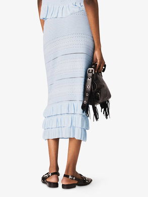 Skirt, Jersey, Ruched, Slips on, Mid-weight, stretchy fabric.
