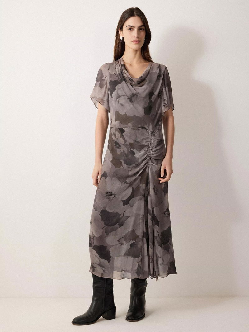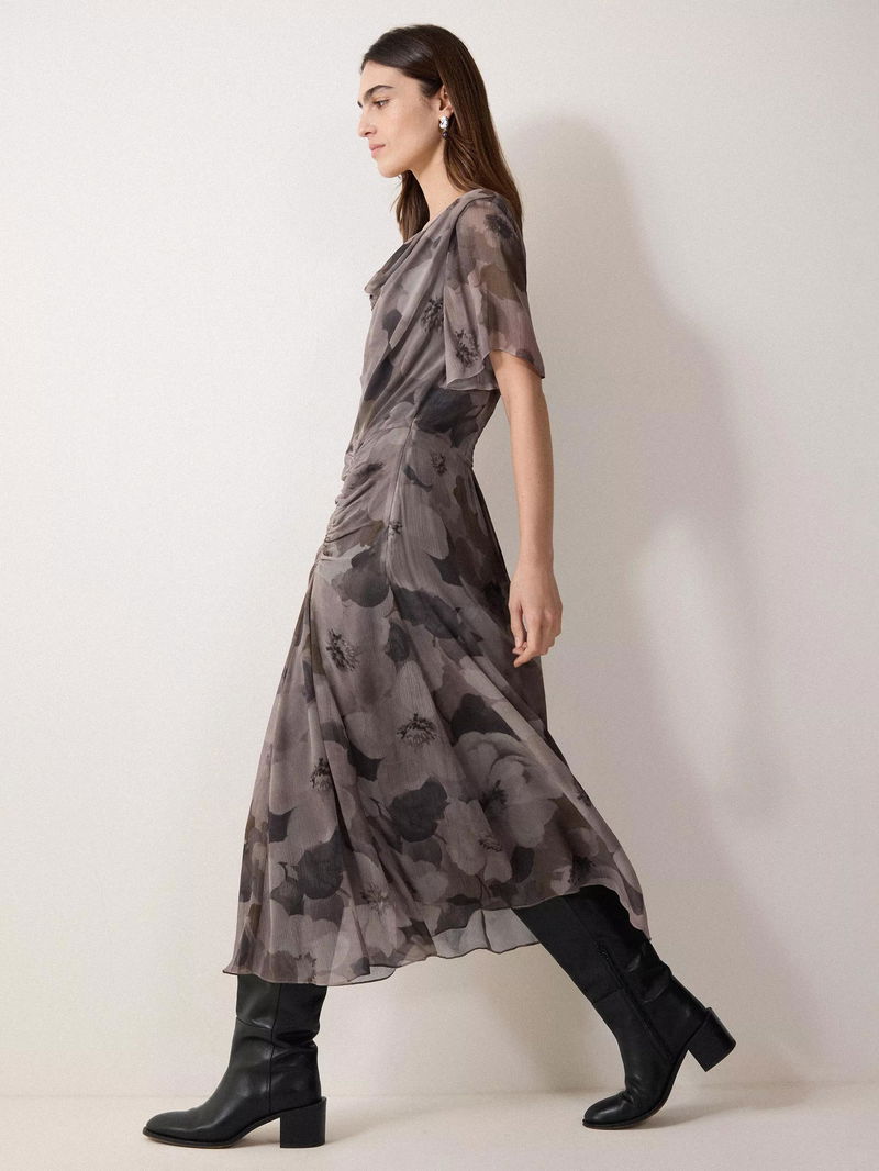 Vintage prints are brought into modern day with this elegant midi dress, showcasing the bespoke Antique Floral, designed in-house.