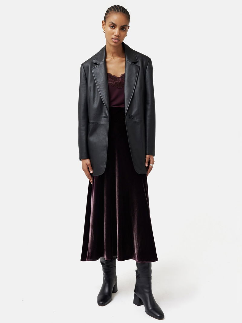 A luxe silk blended viscose gives beautiful drape to this skirt. Bias cut meaning the fabric will drape diagonally across your body for the ultimate in flattering fit, an elasticated internal waistband has been added for ease of fit around the waist with an invisible side zip. Fully lined. Wear with slouchy knits and boots or with a chic silk cami top and heels.