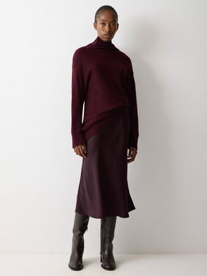Designed to sit high on the waist with a fitted waistband, this flattering skirt falls into a graceful midi silhouette with a button-down front. The luxe jersey fabrication makes it soft and comfortable enough for all-day wear.