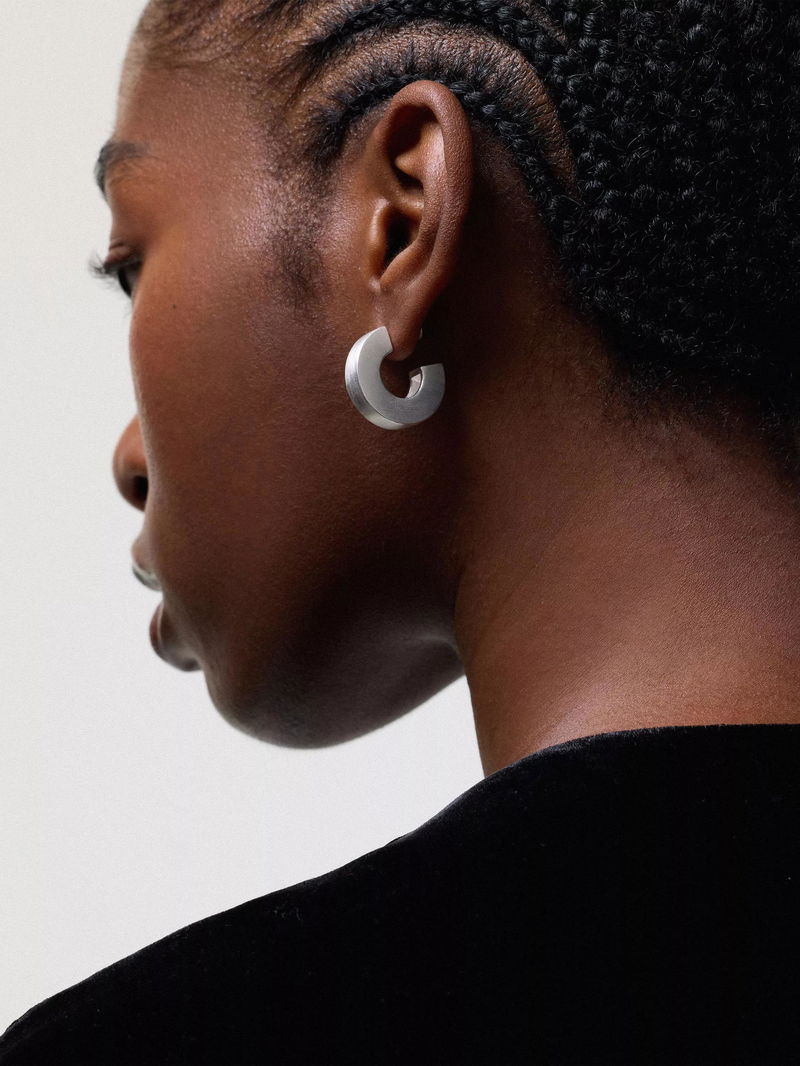 A perfect accessory piece, the Chubby Block Hoop Earring with a classic stud back. Cool and contemporary in both hue and shape, wear this to elevate your everyday wardrobe. Suitable for pierced ears only.