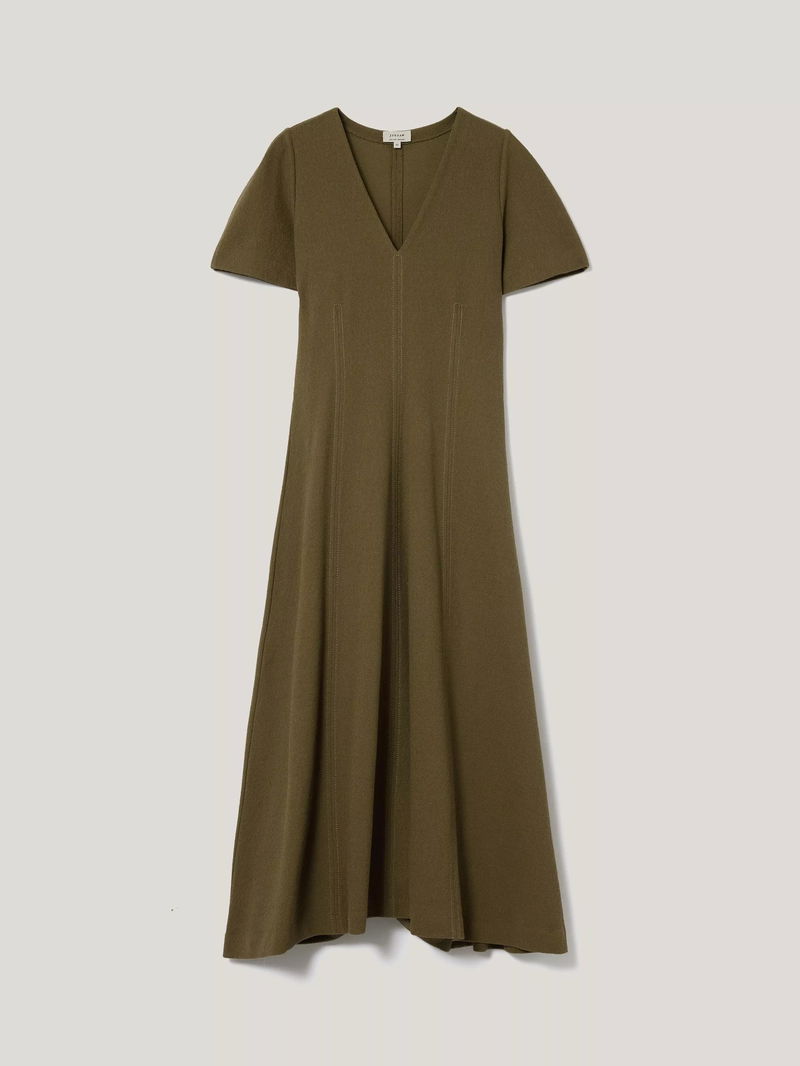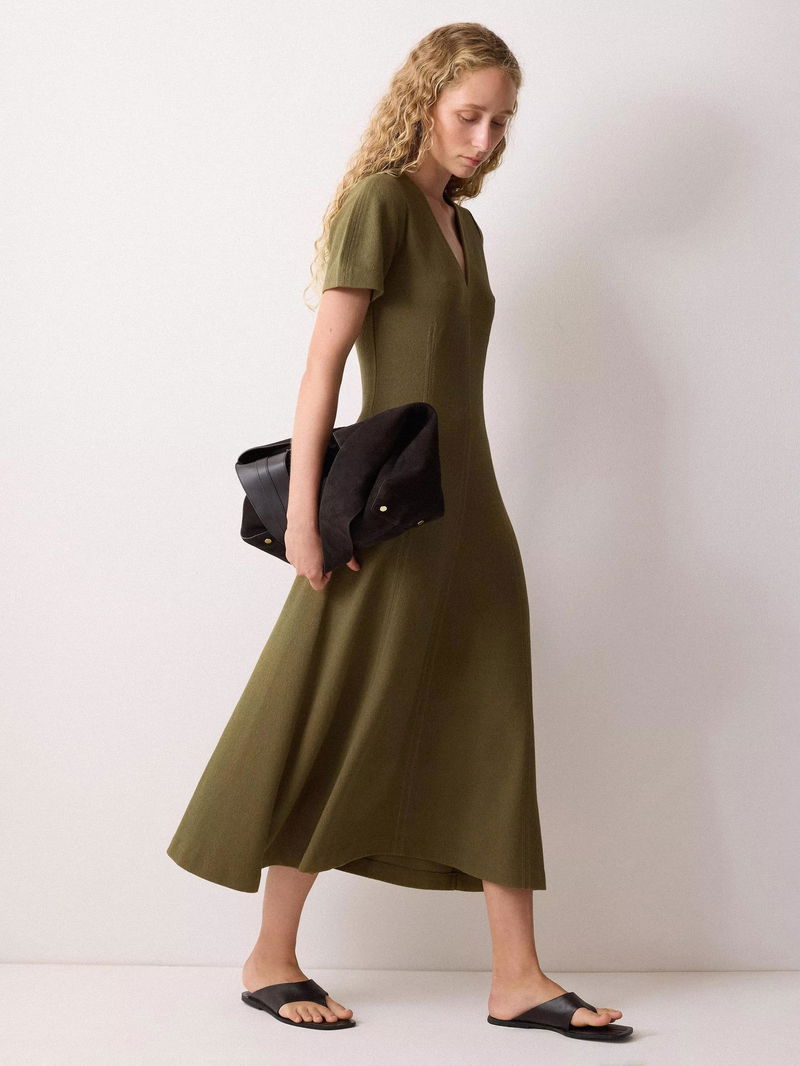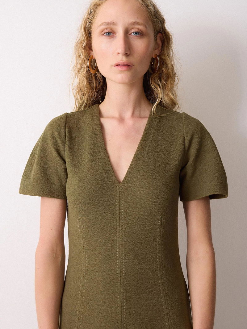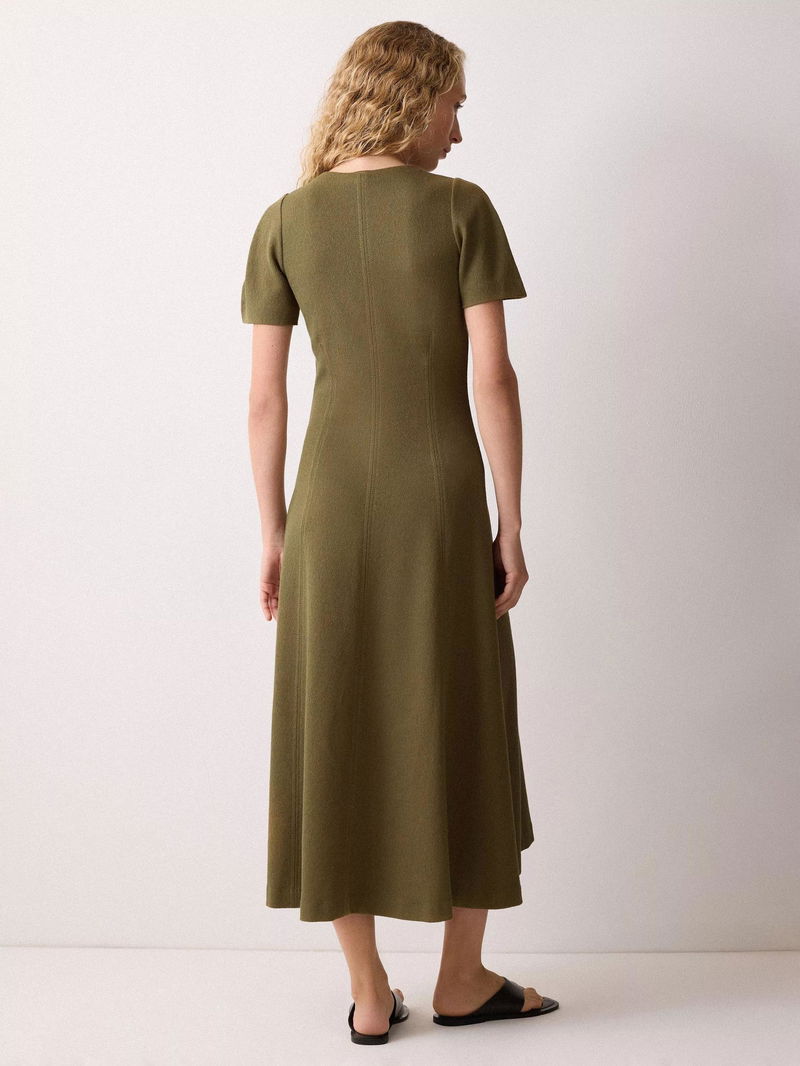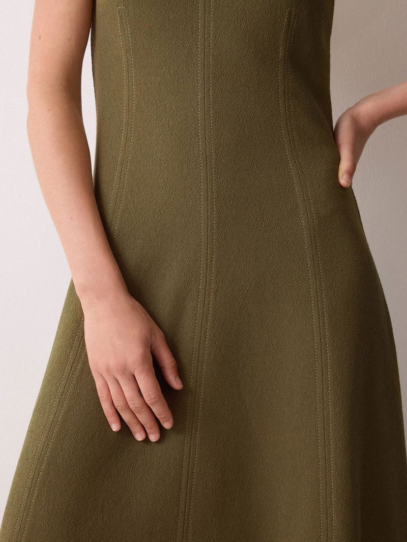 Shape and form come together with this flattering midi dress. Curved sleeves bring structure alongside a fitted bodice with stitch seam detail for lengthening effect.