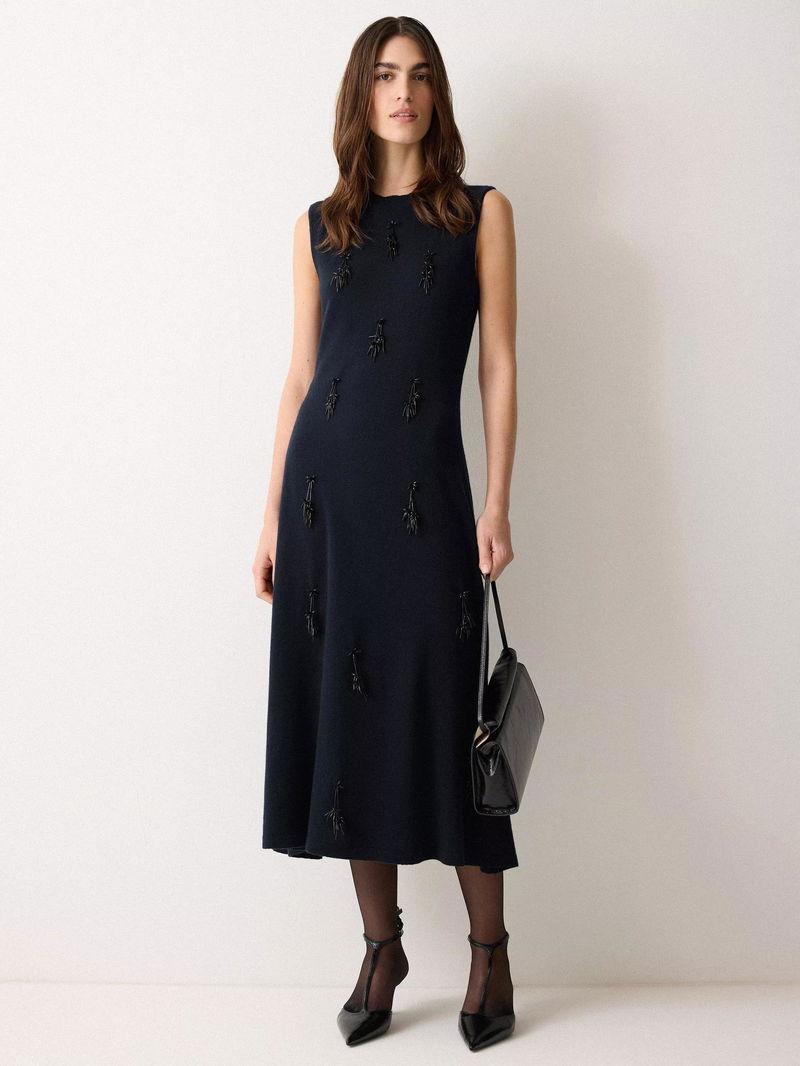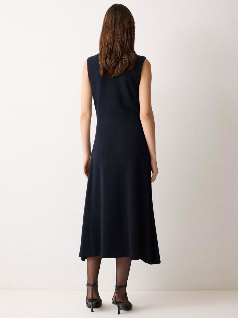 Crafted from 100% wool, this sleeveless midi dress is designed for nights that call for understated sophistication.