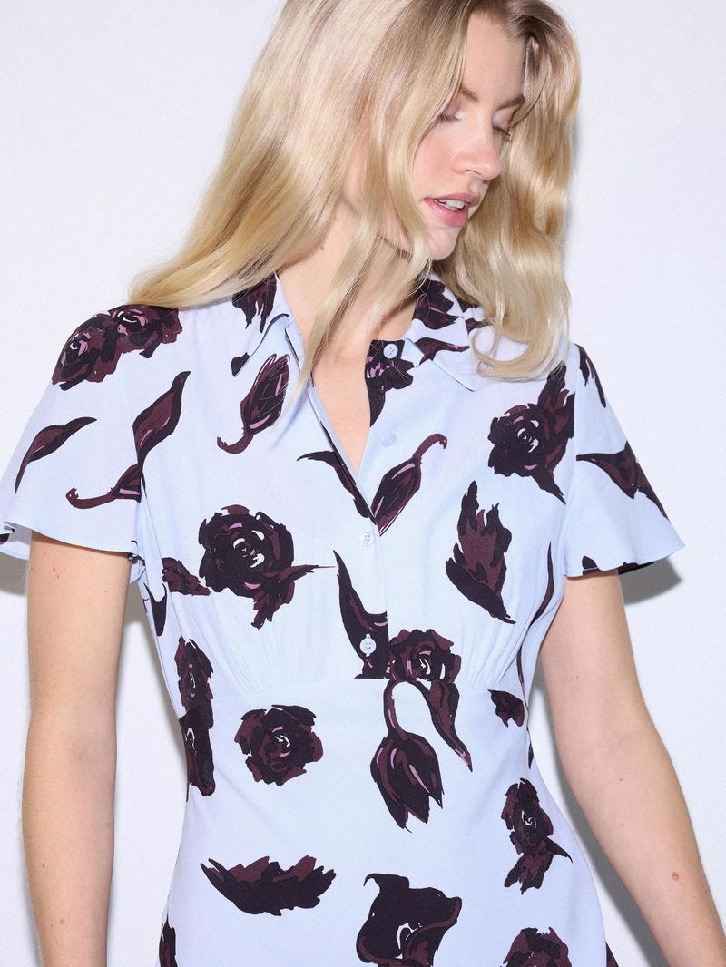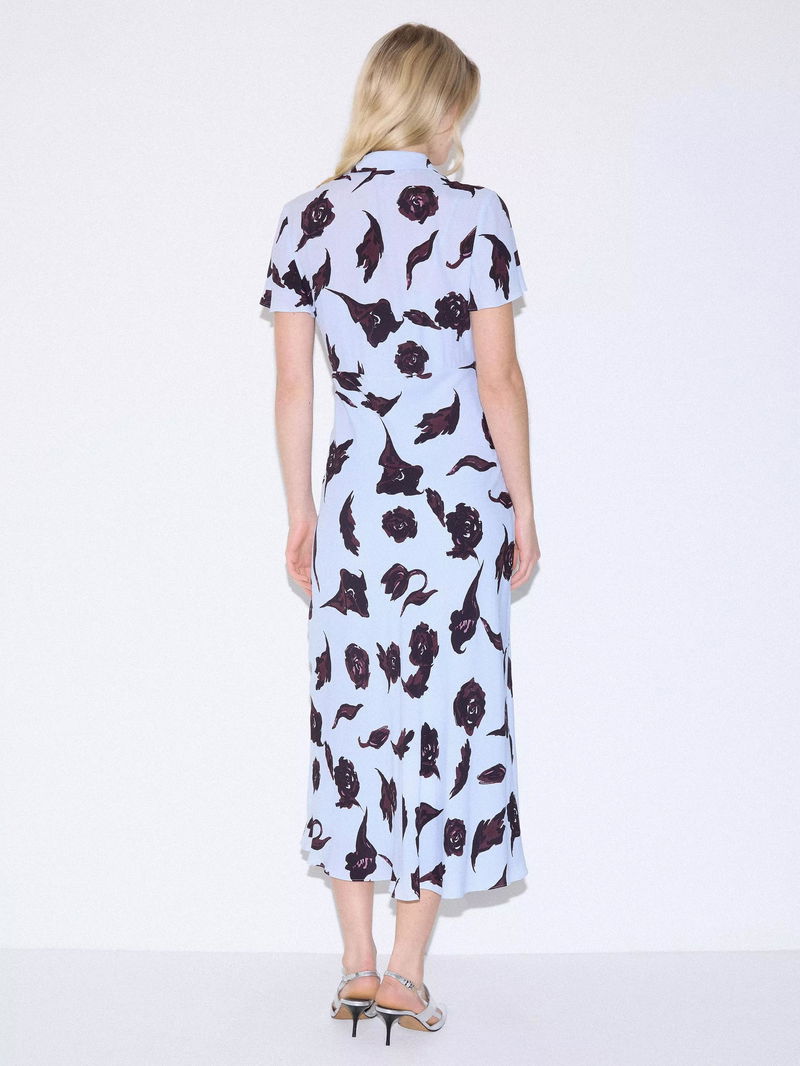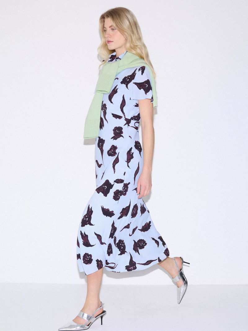 Fallen Peony Bias Dress, Pale Blue