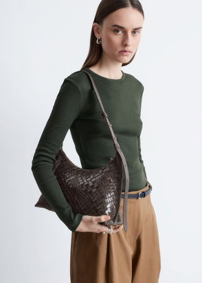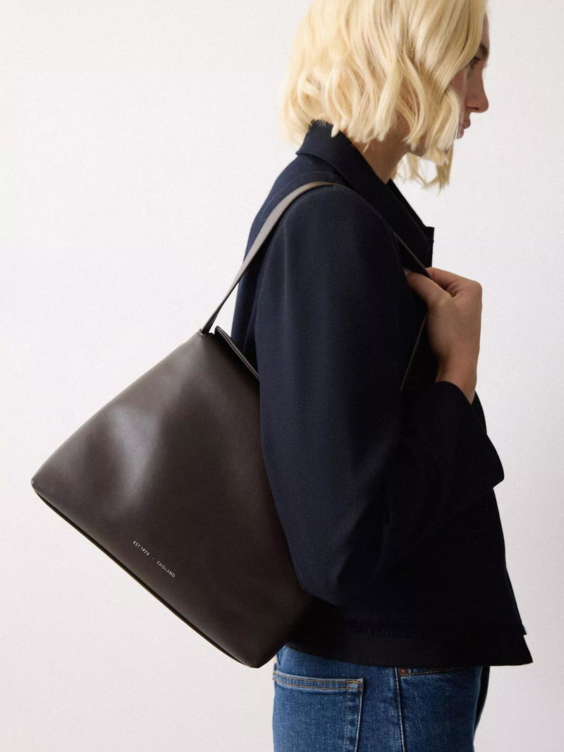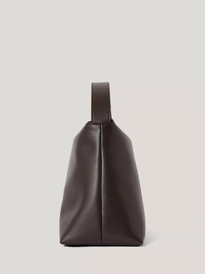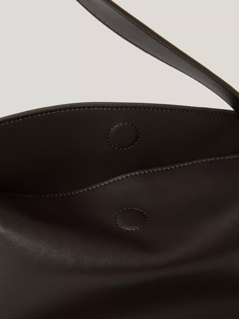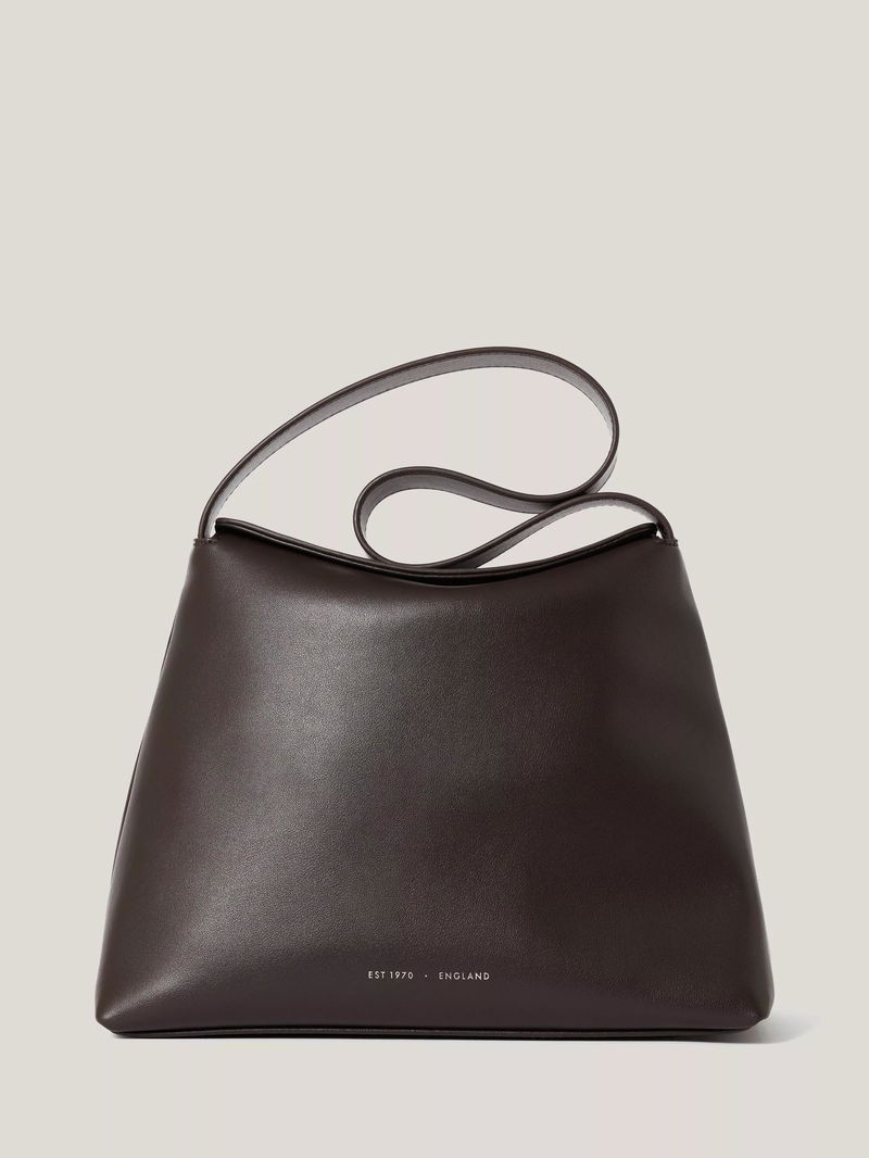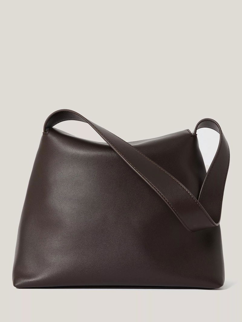 In a smooth and supple leather, this fold-over shoulder bag has a wide strap for comfort and a magnetic closure.