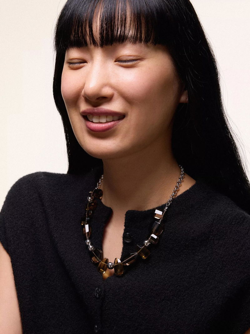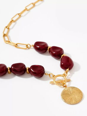 An alternating pattern of irregular-shaped stones makes this chain necklace the perfect statement piece for all your ensembles.