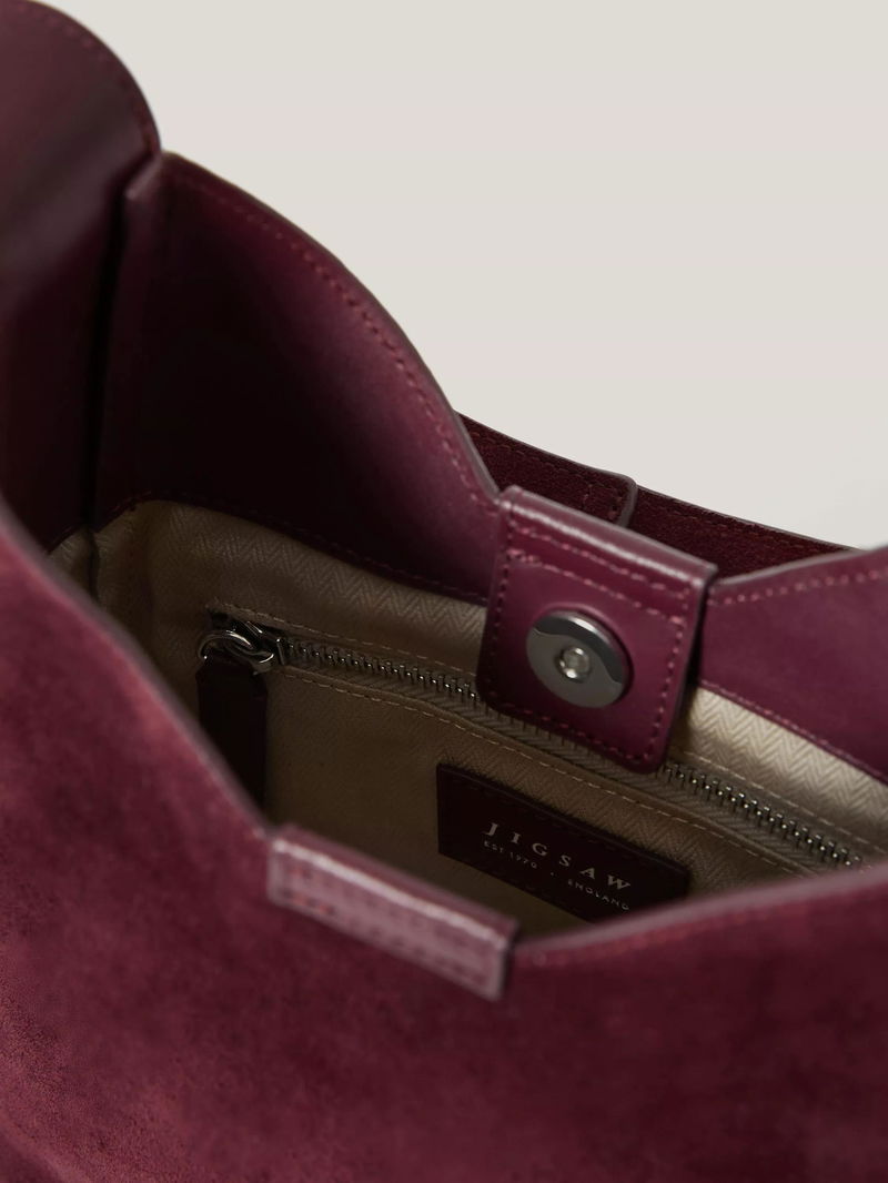 The Heckfield is a Jigsaw icon - and this reimagined mini version bears the same hallmarks as the original. Crafted from suede leather with a magnet closure that keeps things safely stowed, it boasts metallic-tone branding and a wide shoulder strap for easy carrying of day-to-day essentials.