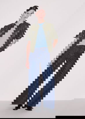Cut from fabric from Loro Piana, a premium Italian mill, this is the ultimate luxury denim shirt. A classic shirt shape, it has been styled with contrast fabric at the collar, cuffs, plackets and back yoke, and finished with gold coloured buttons. Tuck into fitted mini skirts or wear with wide legged trousers for a modern, yet pared back look.