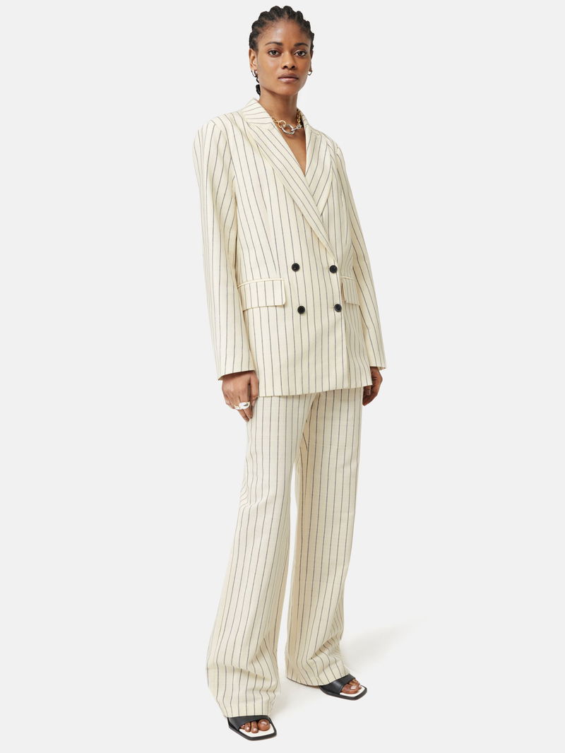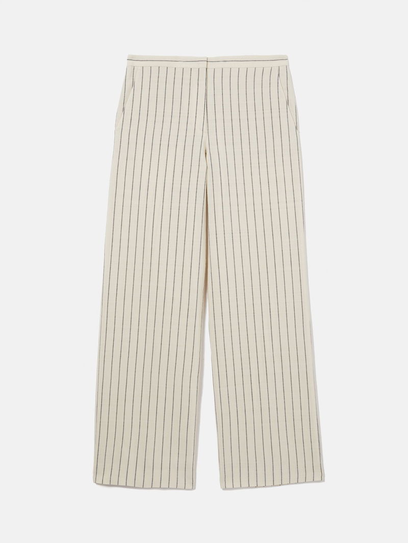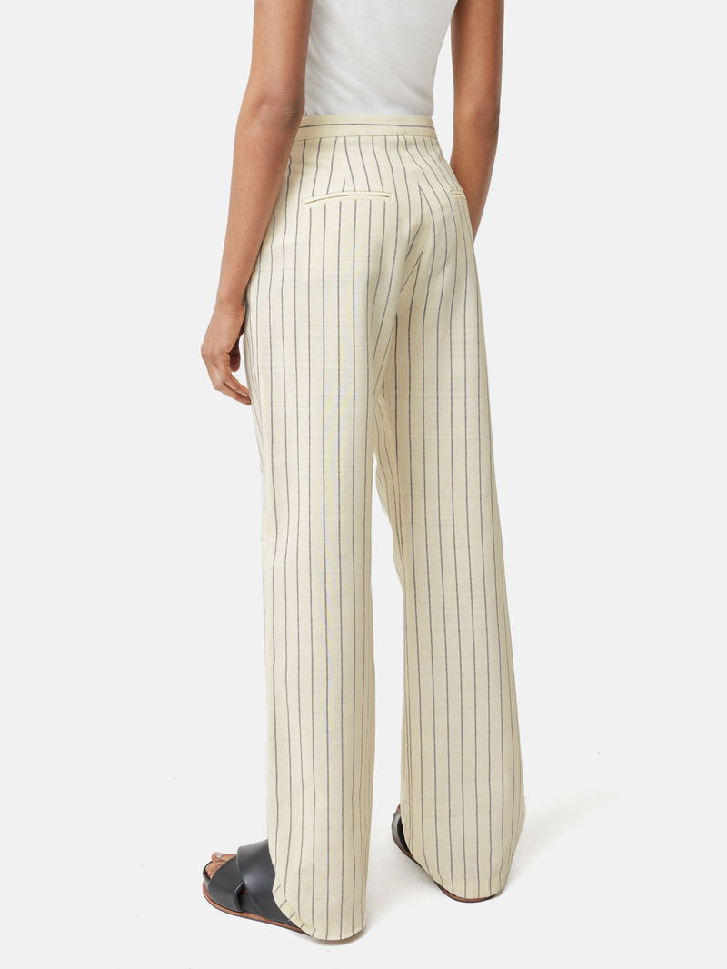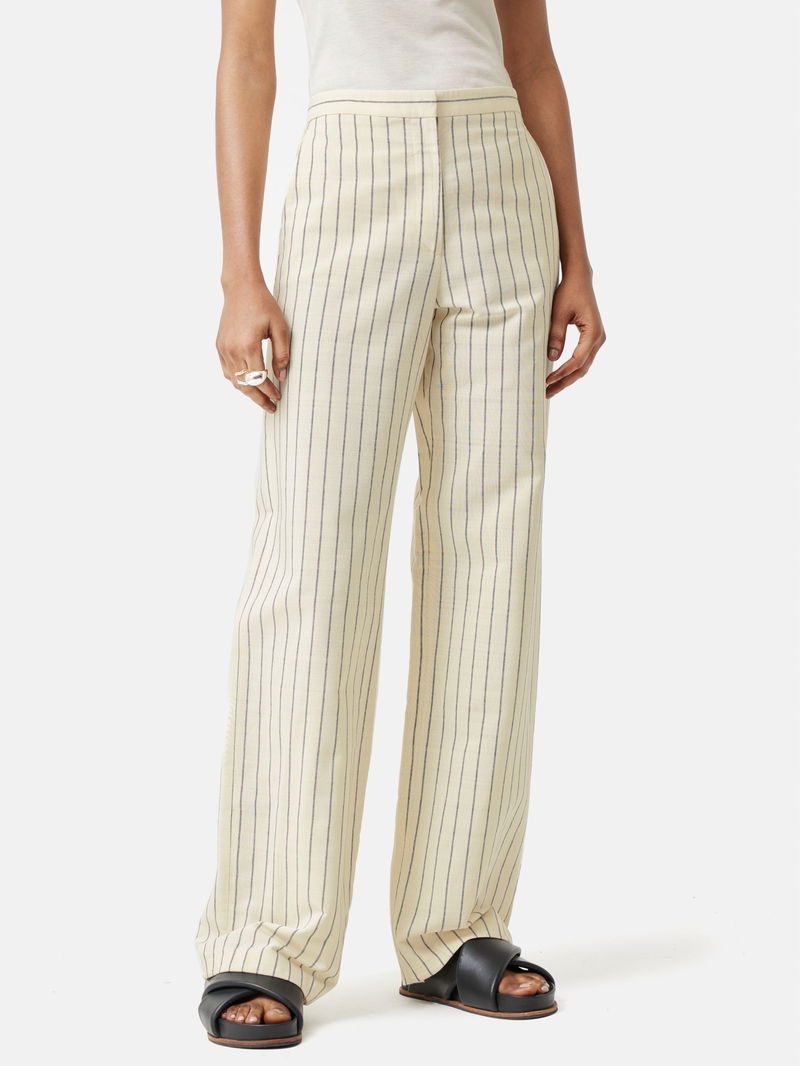 Cut from a pinstriped viscose-cotton Italian fabric blend, a tailored trouser with an easy fitting straight leg, higher rise and a skinny waistband. Front slant pockets and back jetted pockets. Front zip fly fastening with hook and bar. A versatile trouser that will see you through every season.