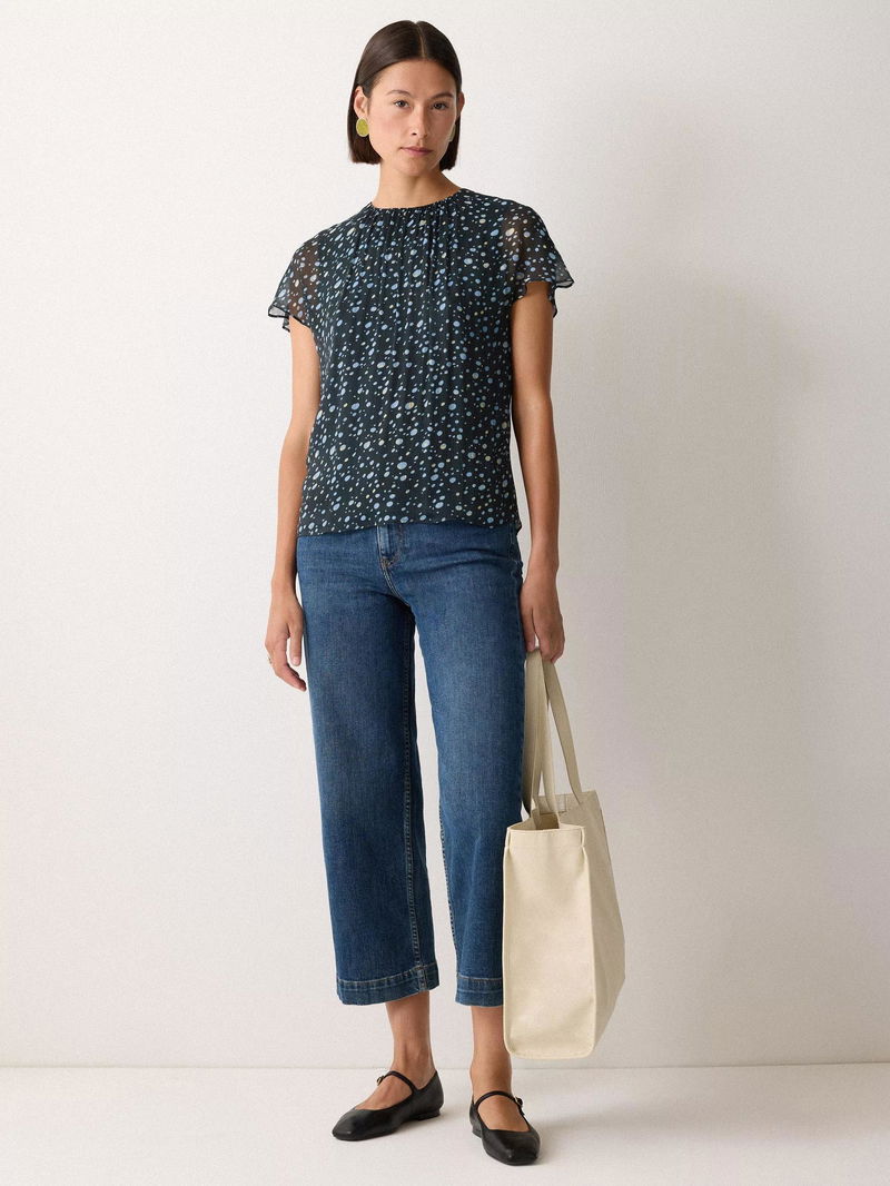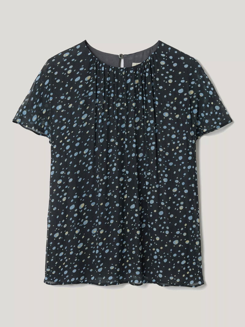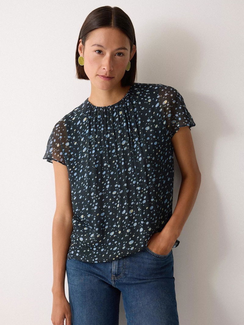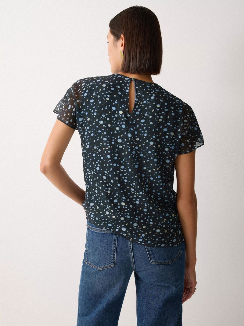 For the casual everyday, this T-shirt from Jigsaw has a classic polka dot print. Cut with a softly rounded neckline and short sleeves, it is made with light yet robust fabric for longevity of wear and will slot seamlessly into your everyday staples.