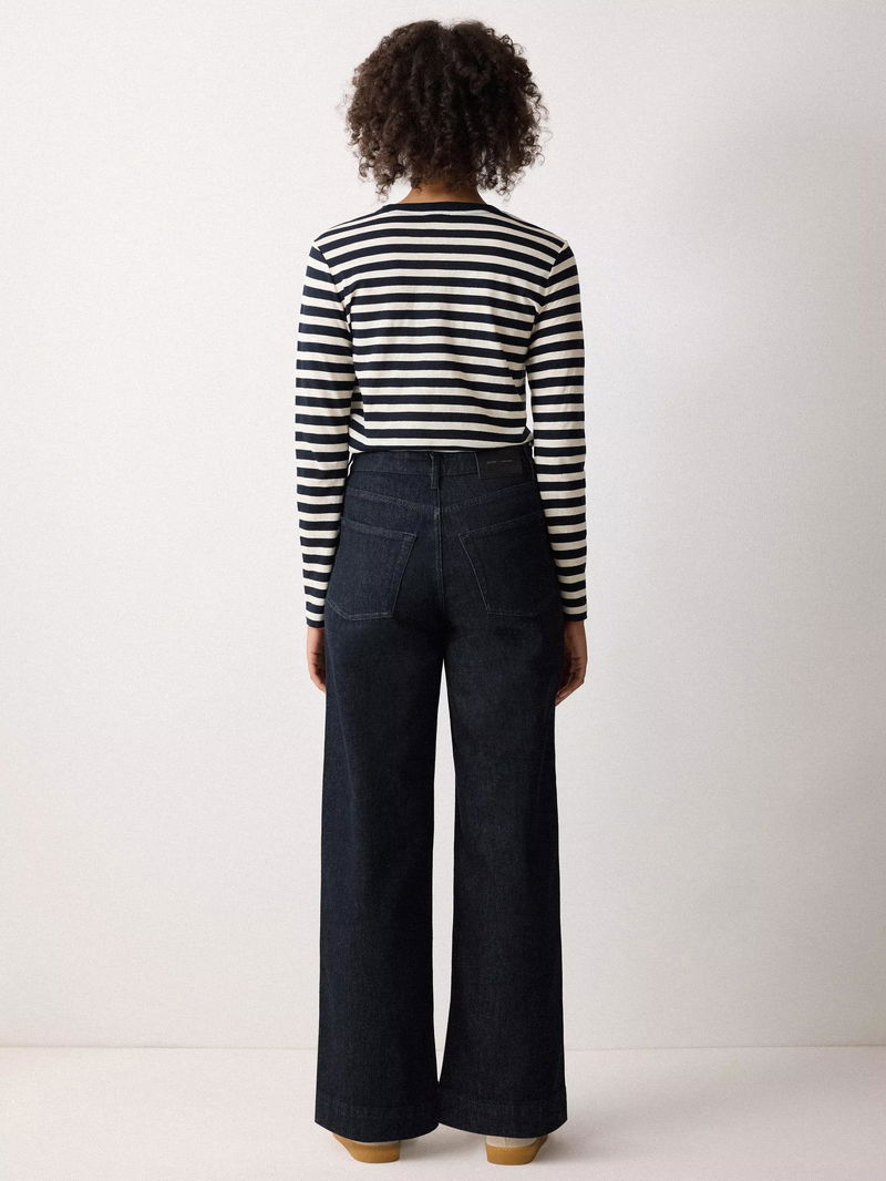 Today's answer to the 70s jean, the Rhea style from Jigsaw boasts a flattering, high-rise waist and a sleek, leg-lengthening profile with double-patch pockets at the waist. Finished with press pleats to the front and back adds a smart spin, as does the tailoring-inspired waistband.