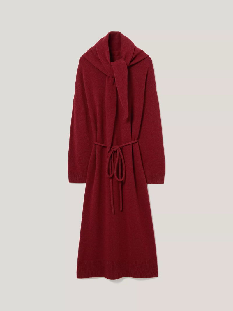 Crafted from pure merino wool, it comes with a matching scarf that can be fastened or removed to switch up your look.
