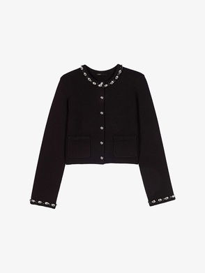 Opt for a barely there cover-up with this beautiful cardigan in a flowing sheer fabric blend to try out transparency in a modern way. Cut for a cropped silhouette with flared sleeves, button up over your linen ensembles for true summer romance.