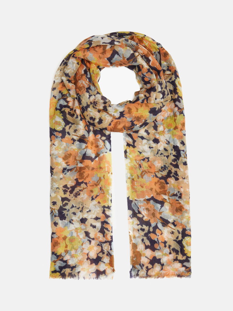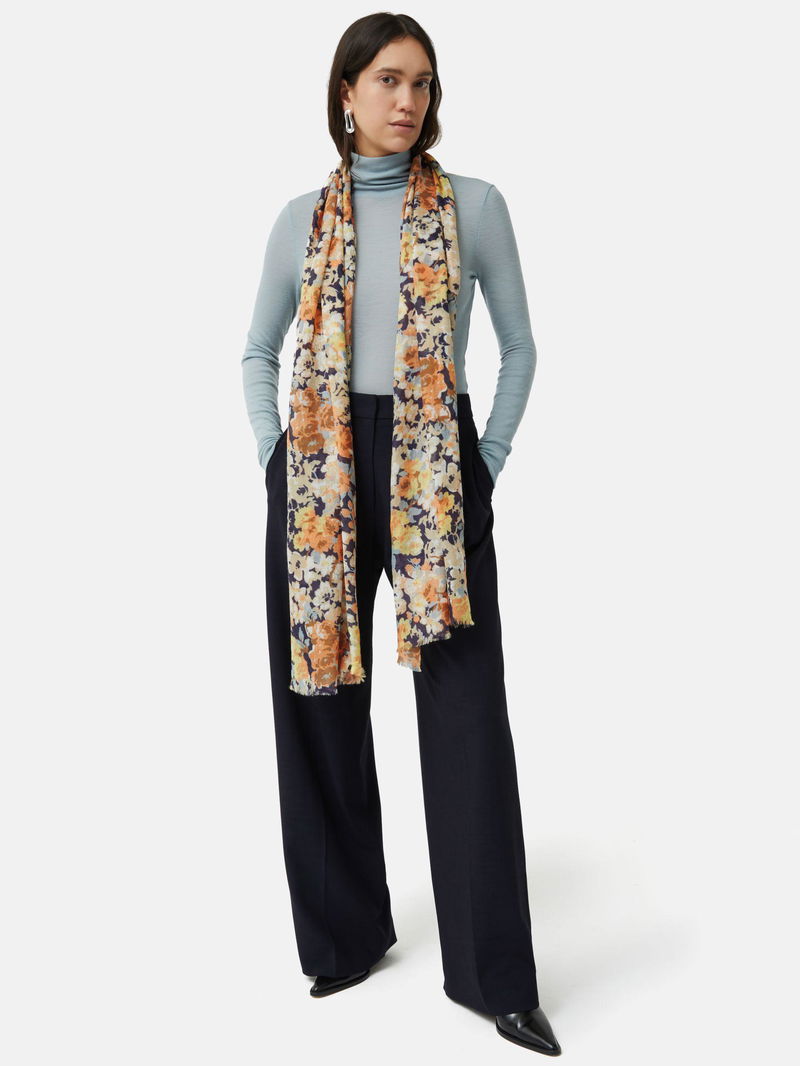 Wrapping up against the elements, this wool blend scarf from Jigsaw is defined with pretty blooms throughout.