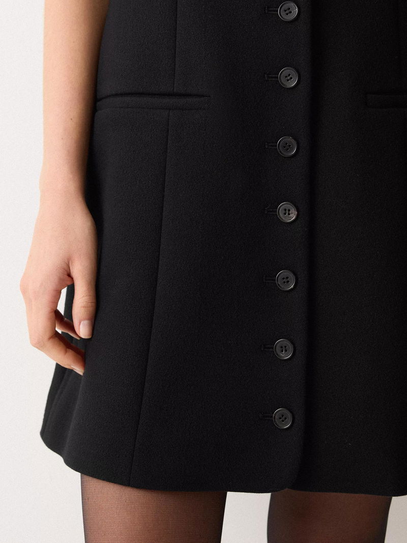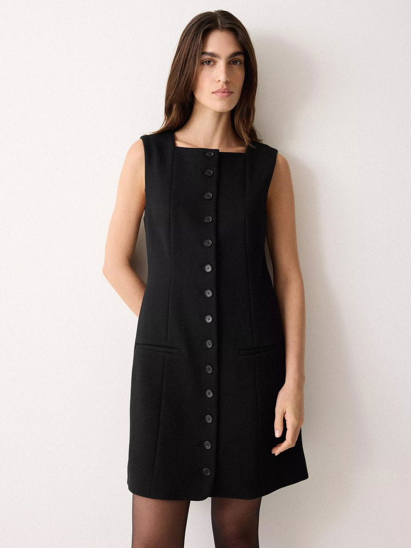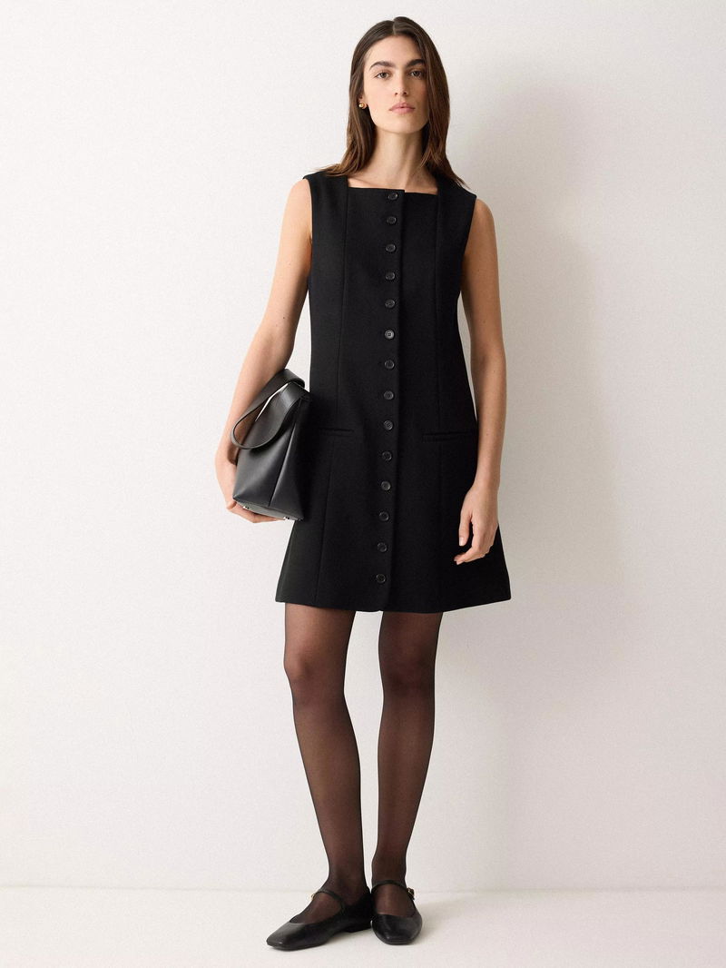 The classic waistcoat comes in a new form this season, with this mini A-line dress providing the perfect base to a range of stylish looks. The design, crafted from cotton, is accented with a flattering square neckline and a full button-down front.
