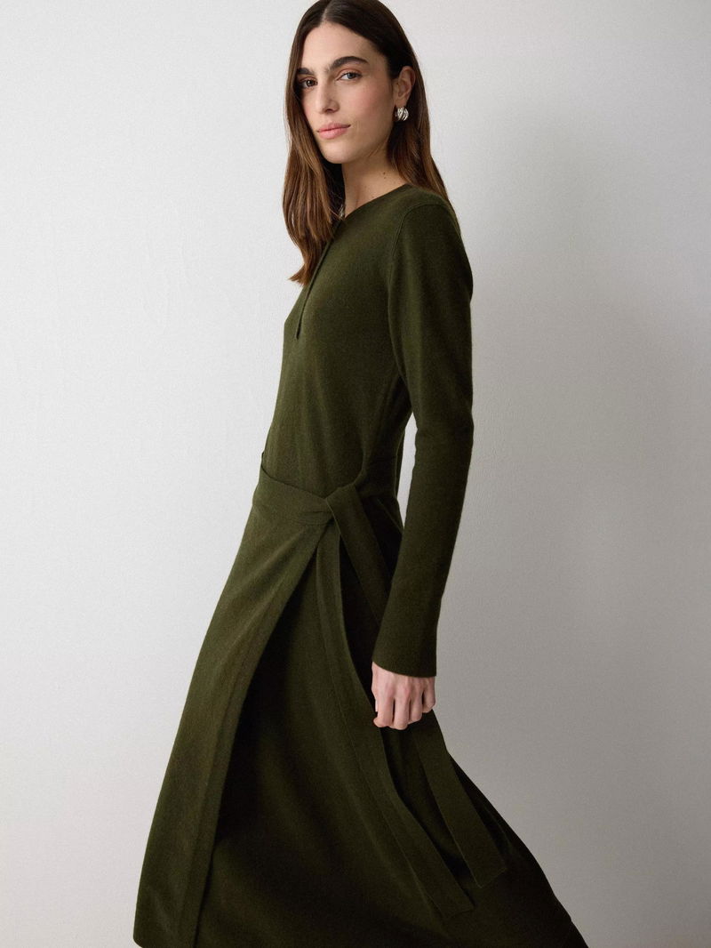 The Wool Rich Tie Dress is a lightweight and warm piece in a simple silhouette elevated with a D-ring detail and half-button front. The feminine wrap lends to an elegant and wearable piece you'll love to wear.