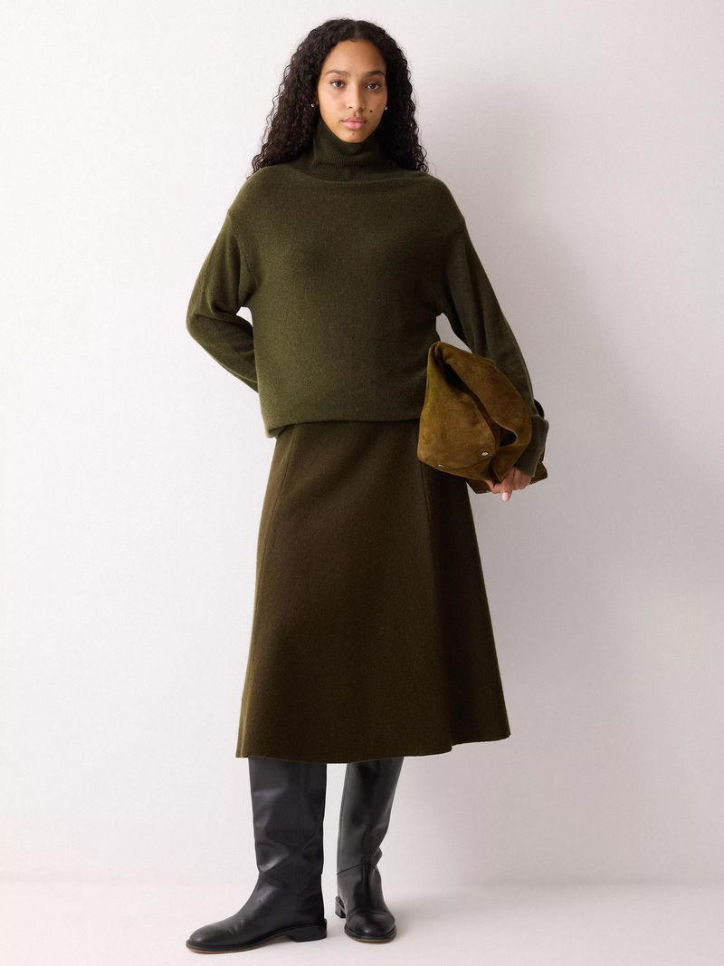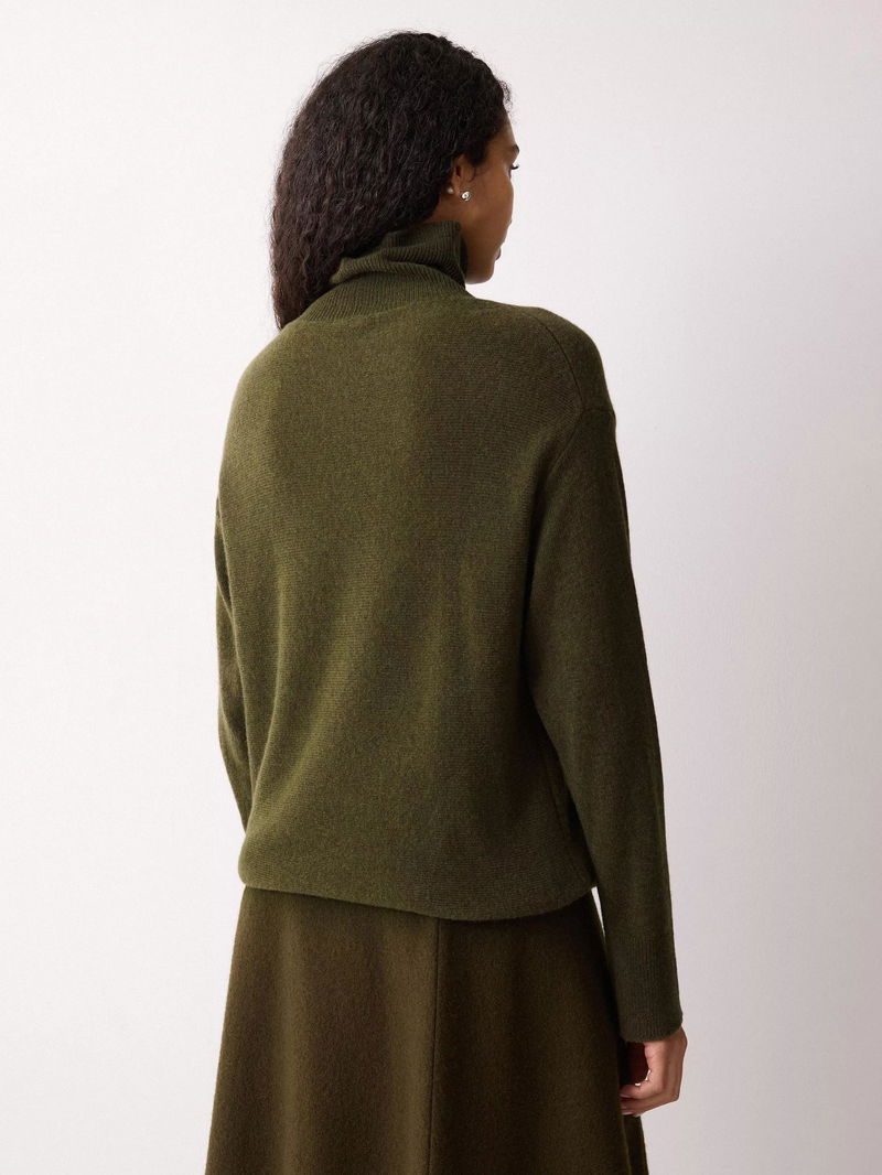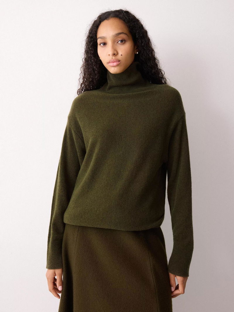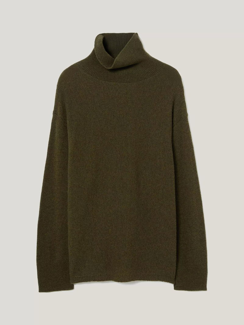 Bundle up for the colder seasons by pulling on this cosy jumper; crafted using a super soft wool-rich blend. The relaxed cocoon silhouette is complemented by a ribbed turtle neck that can be worn folded or unfolded. Layer under dresses or tailoring pieces for the ultimate comfort.