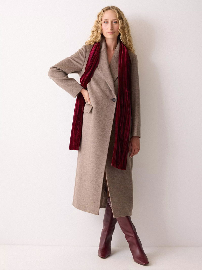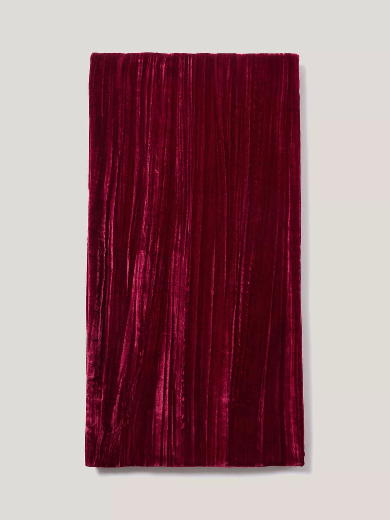 This scarf is a simple way to uplift your autumn/winter ensemble with rich colour and texture. Crafted from a plisse velvet, we love it draped over a crisp white shirt for an instant pop.