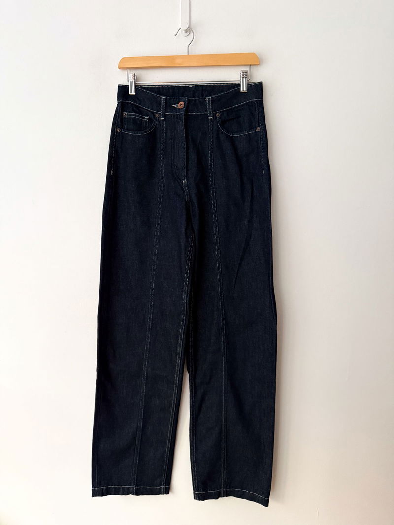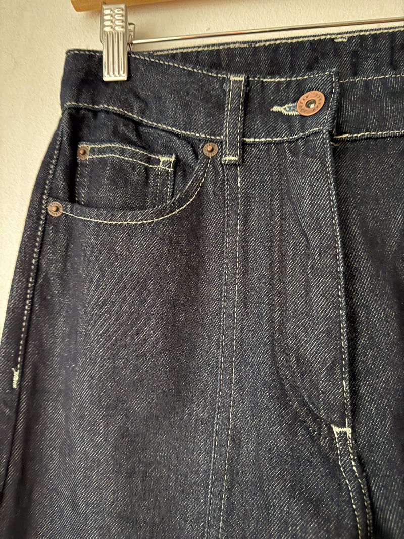 Flattering high-rise waist and a sleek, leg-lengthening profile with double patch pockets at the waist.