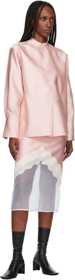 Jil Sander’s black blouse is made from delicate silk satin to a modern asymmetric cut with a drape lapel cutout and a smocked collar.