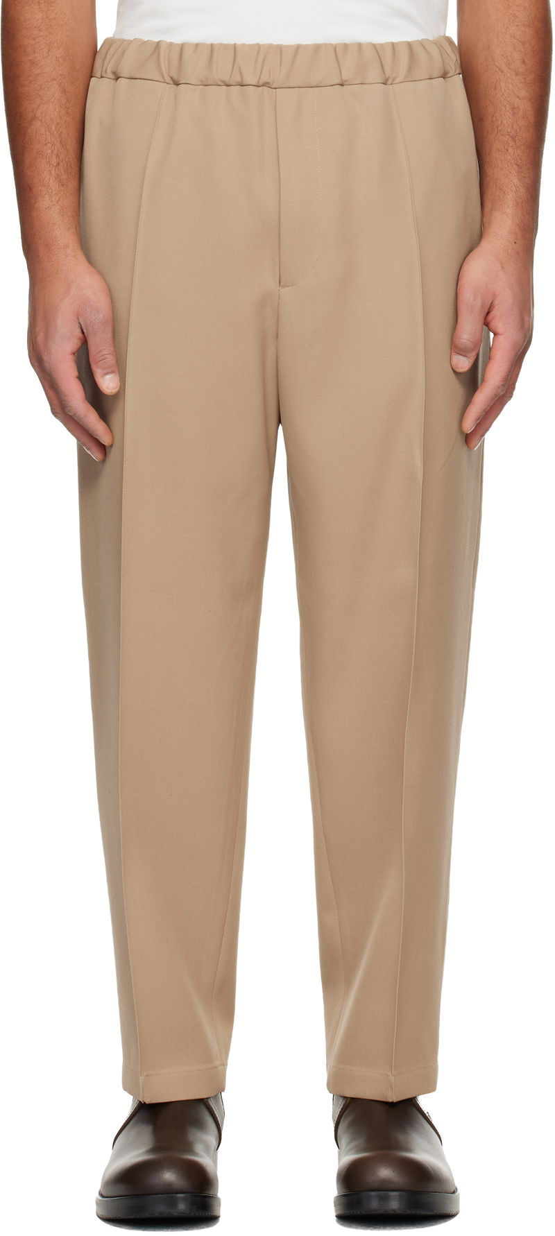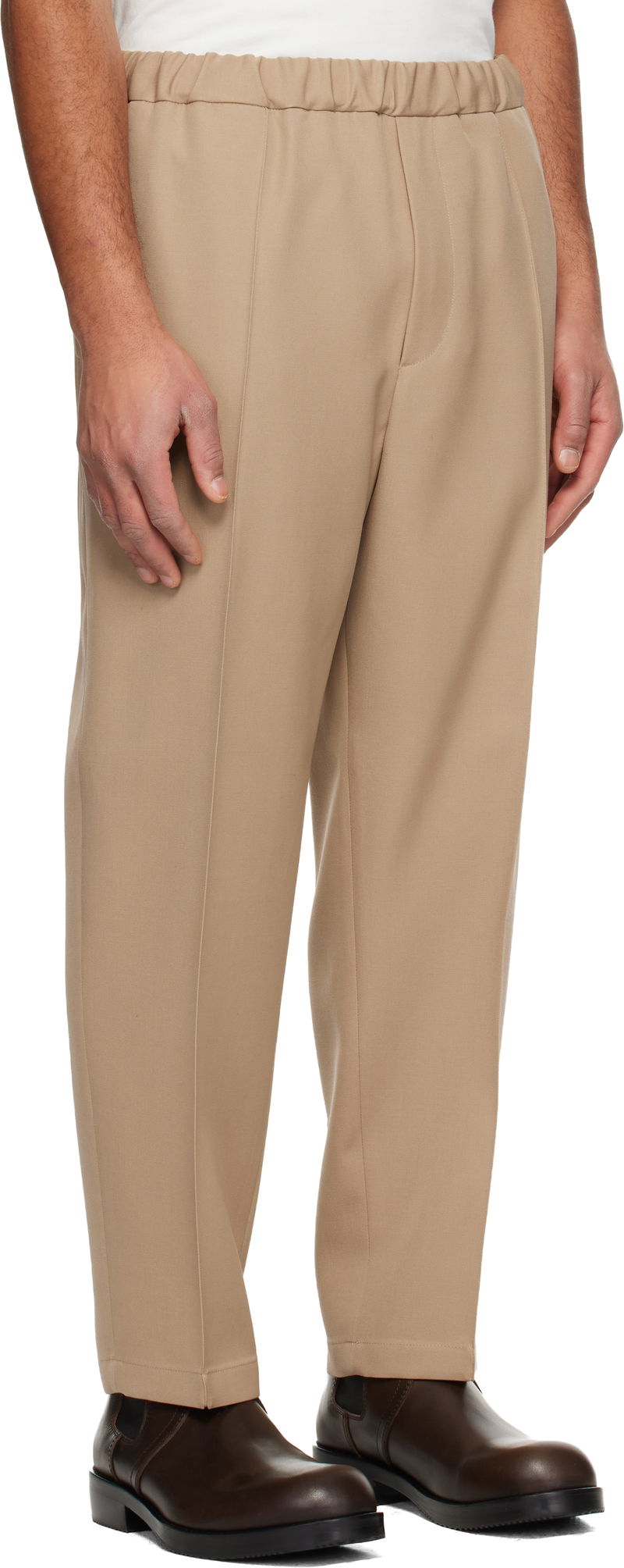 Beige Wool Gabardine Tapered Trousers