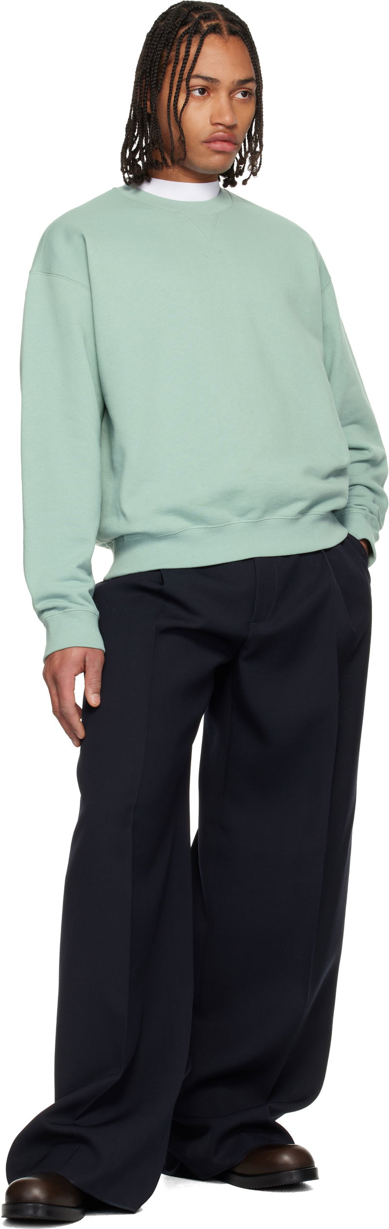 Blue Cotton Terry Crew-Neck Sweatshirt