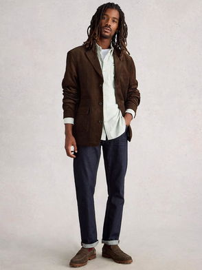 Virgin wool canvas blazer. Check pattern throughout. · Notched lapel· Button closure· Flap pockets · Padded shoulders · Welt pockets at interior· Viscose twill lining.