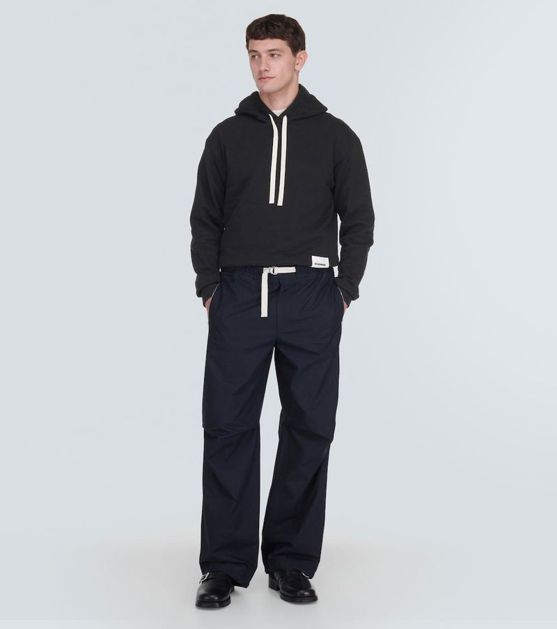 Take a break from city life in the Jil Sander+ line – a collection of fashionable and functional designs for the outdoors. This black hoodie is made from cotton jersey with contrasting drawstrings and a subtle logo patch.