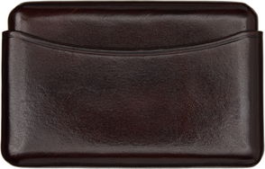 Buffed calfskin card holder in brown. · Logo embossed at face· Four card slots· Central note slot· Grained lambskin lining.