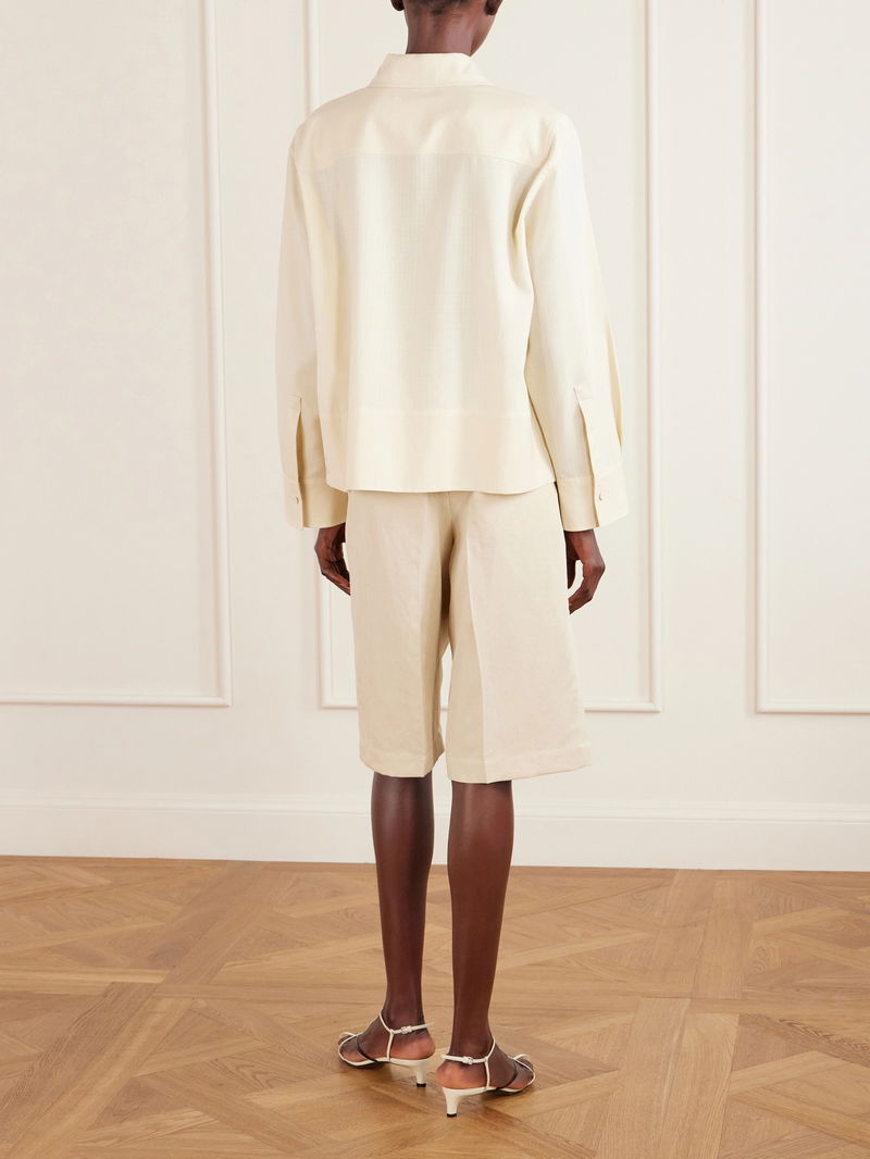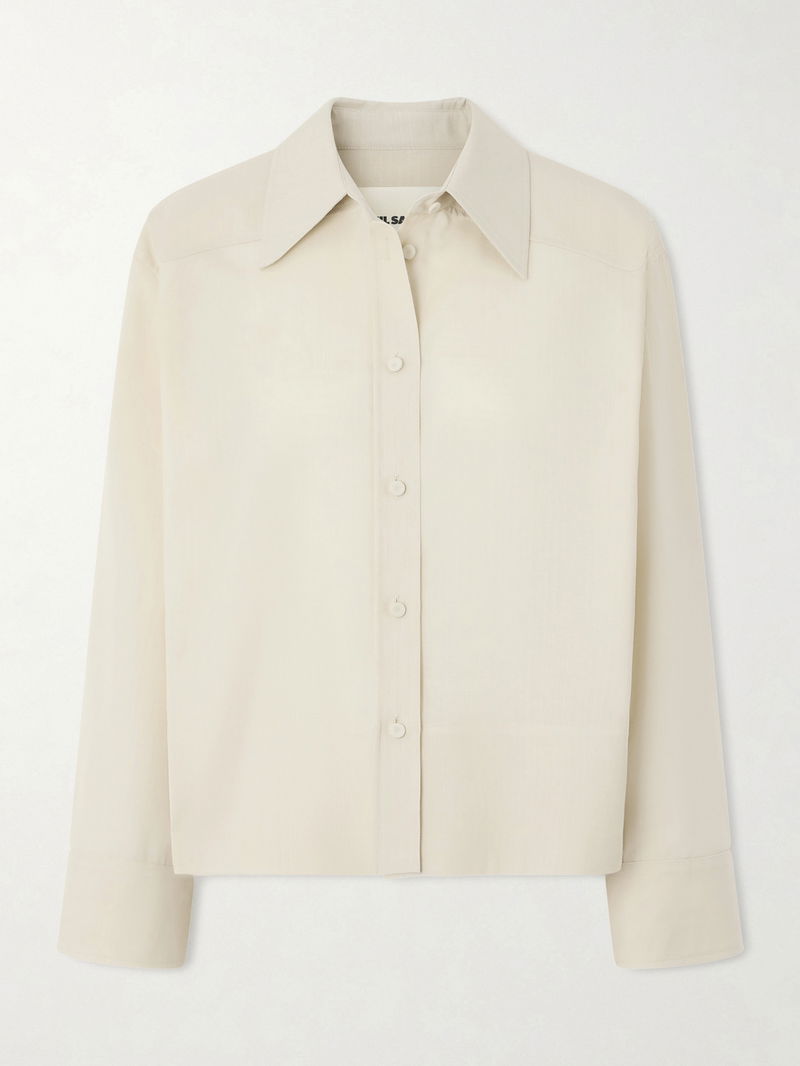 Jil Sander is renowned for its minimal, modern aesthetic. This shirt is tailored from wool for a cropped, boxy fit and has a wide pointed collar and subtle checked pattern.