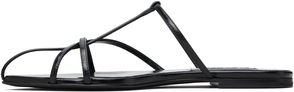 Buffed calfskin flat sandals in off-white.· Open pointed toe· Pin-buckle ankle strap· Logo patch at padded footbed· Leather sole with rubber injection.