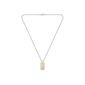 Curb chain necklace in silver-tone brass.· Gold-tone graphic pendant at drop· Silver-tone O-ring · Adjustable toggle fastening·