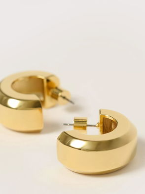 Pair of handcrafted hoop earrings in gold-tone brass.· Hinged-post fastening.