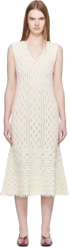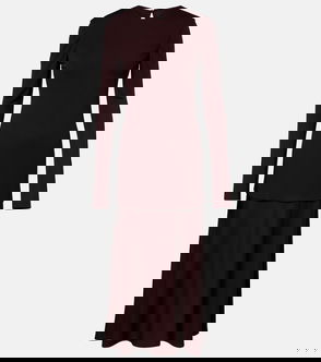 Jil Sander's midi dress has a sleek, layered design, so it almost resembles two pieces. Made from flexible jersey, it has a stand collar that ties at the nape and falls to a flowy skirt. Complete the look with knee-high boots.