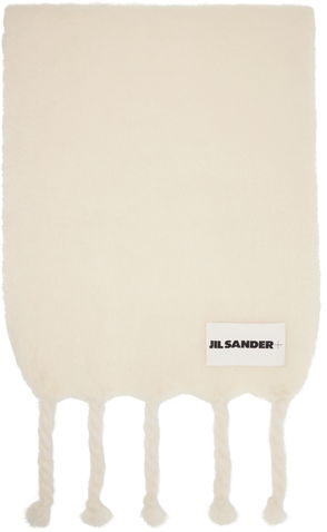 The braided tassels that define Jil Sander’s silver-grey scarf spotlight the label’s artisanal approach to texture and fabrication. It’s crafted from impeccably soft mohair to an oversized profile, then is hallmarked with a white logo patch for a minimalist note.