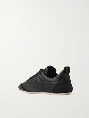 Low-top grained deerskin sneakers in off-white.· Lace-up closure· Patch at padded tongue· Padded collar· Logo embossed at heel counter· Suede and jersey lining· Treaded rubber sole.