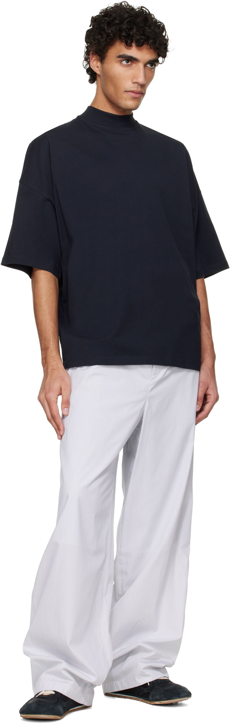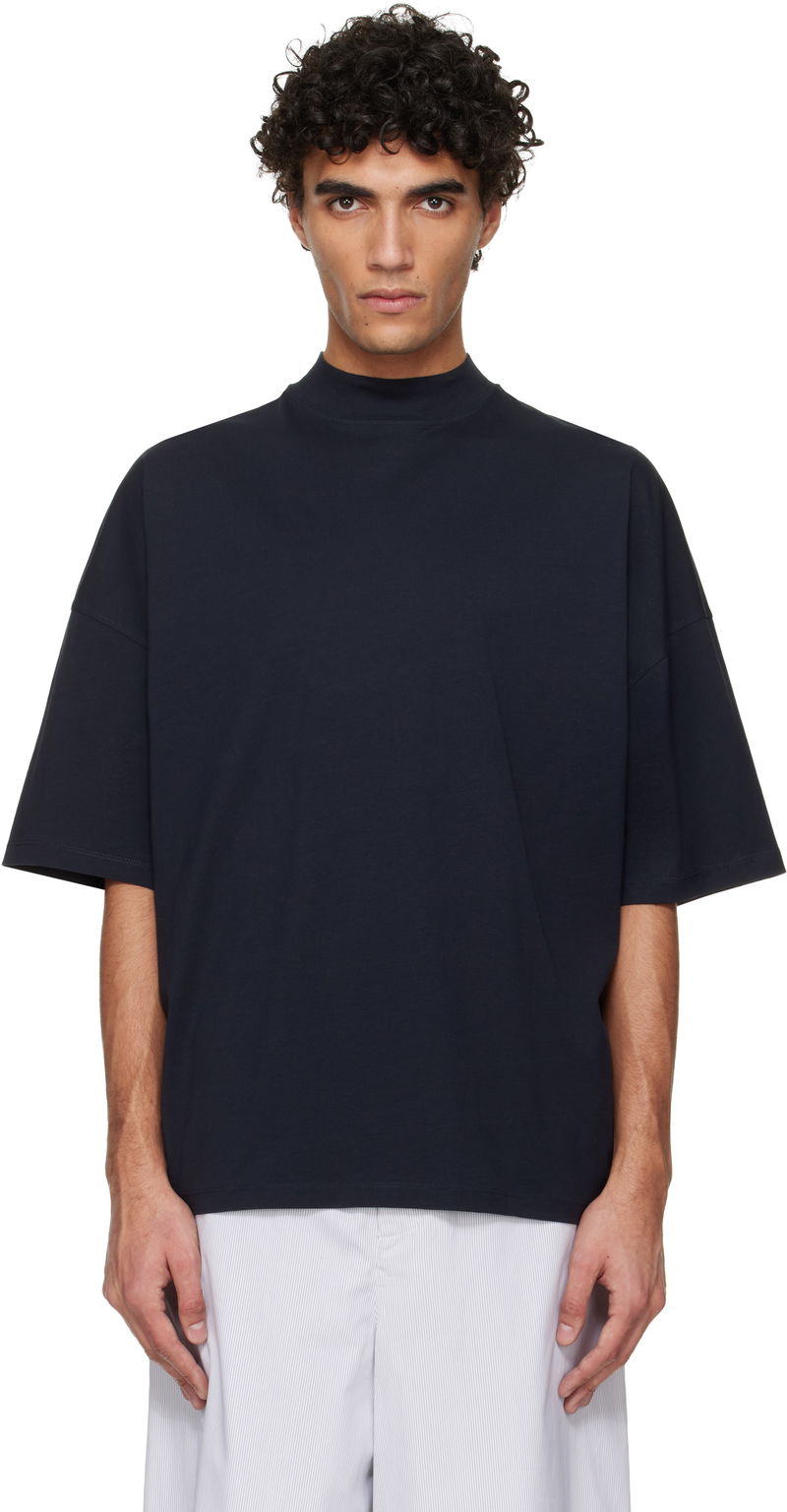 Navy Cotton Mock-Neck T-Shirt