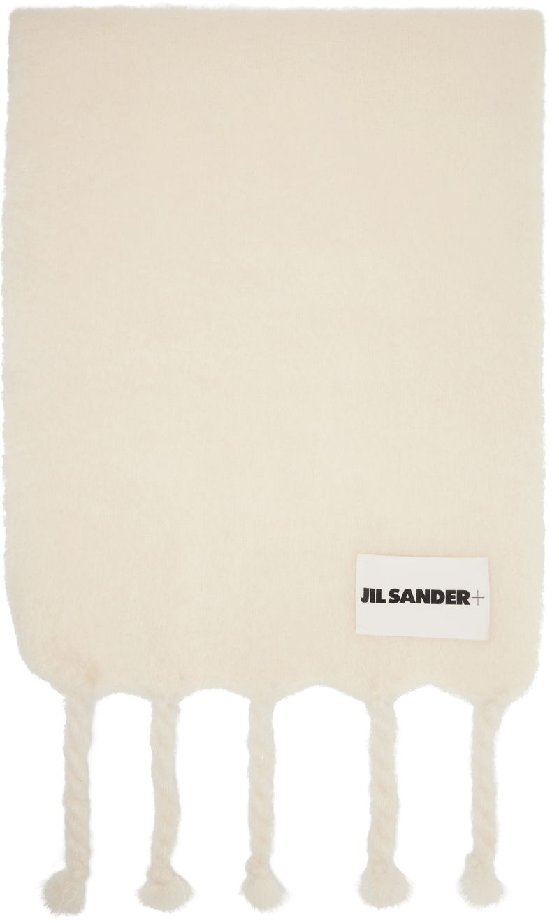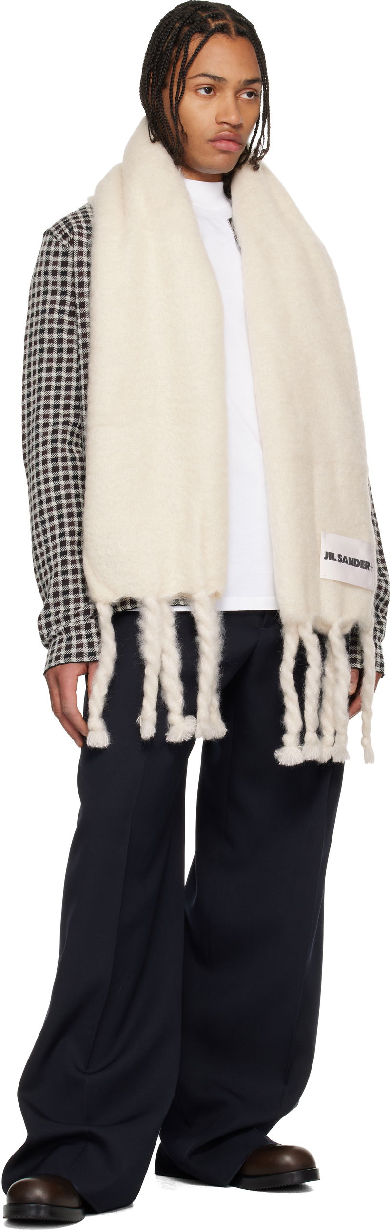 Rectangular hand-knit mohair- and wool-blend scarf.