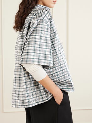 Luke and Lucie Meier met while studying at Florence's Polimoda University and this dark green shirt reflects their creative input at Jil Sander. It's shaped to an oversized frame made from lightweight wool gabardine and finished with an unconventionally wide collar followed by a buttoned placket and cuffs. Style it with tailored trousers or a demure skirt depending on your mood.