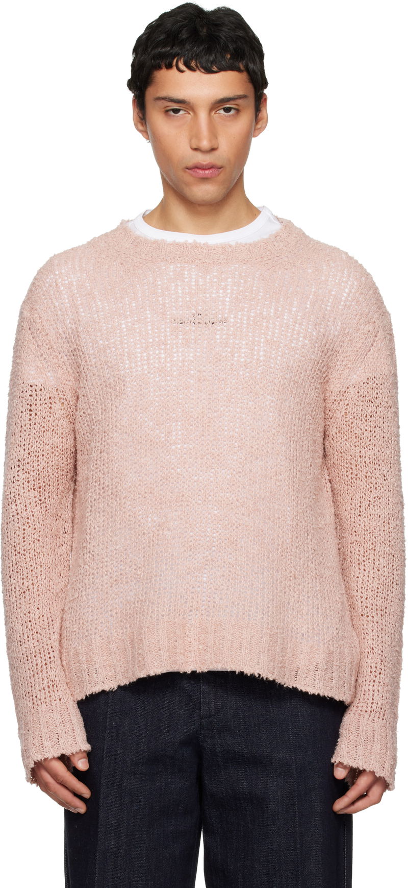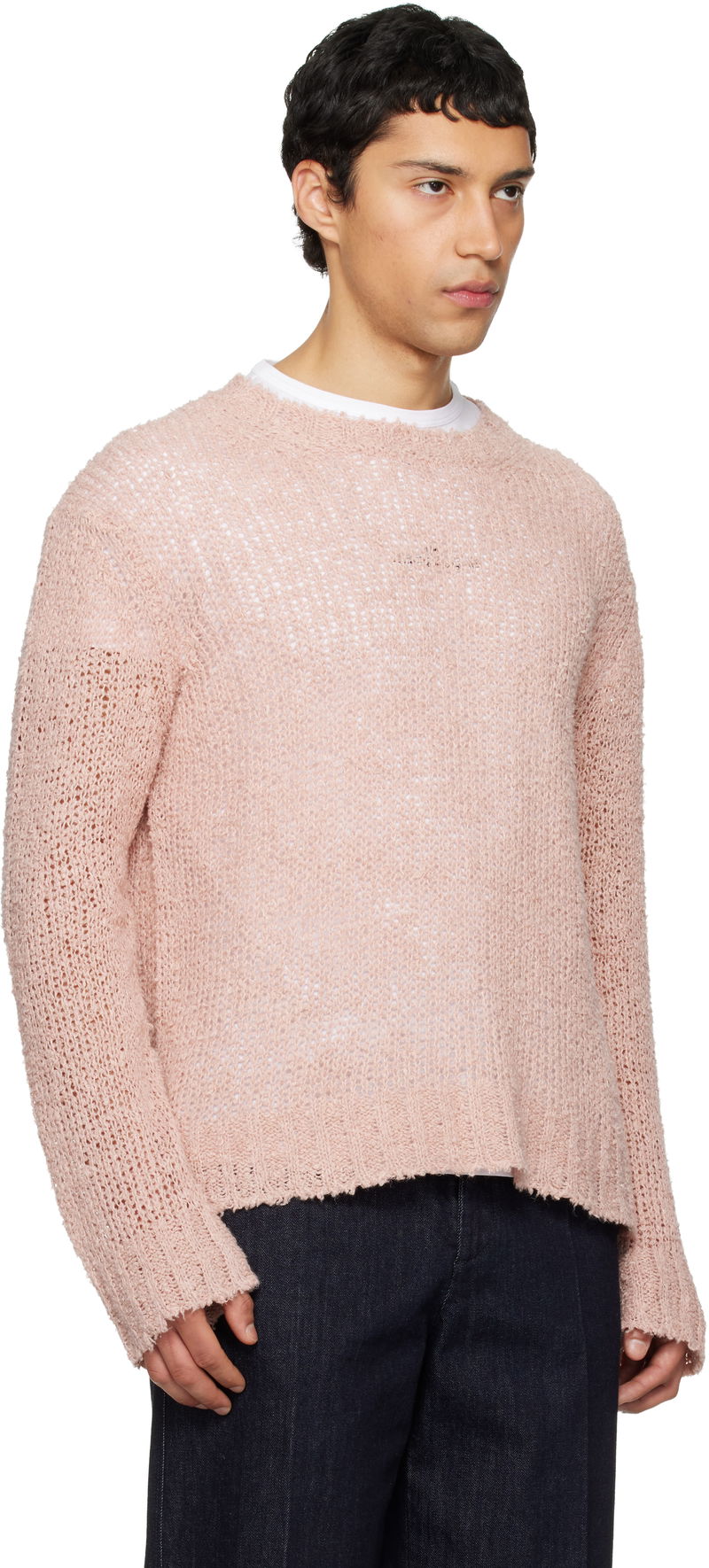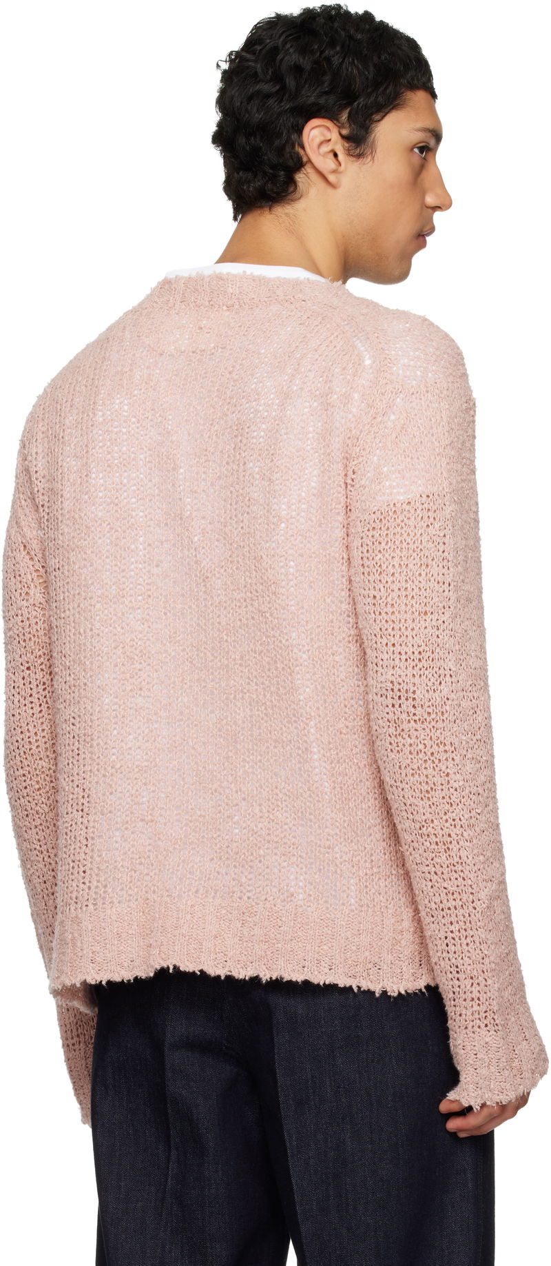 Semi-sheer knit flax linen sweater. Rib-knit crewneck, hem, and cuffs.