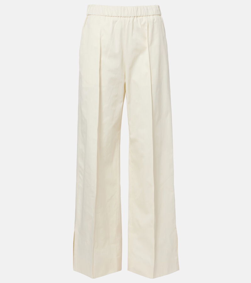 Jil Sander's sophisticated minimalism is characterized by neutral tones, clean lines, and precisely-placed details. These wide-leg pants are made in Italy from pure cotton and finished with a refined pleated front.