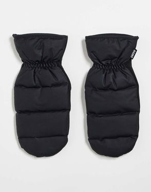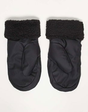 Grained sheepskin mittens in black. · Carabiner and detachable strap at cuffs· Shearling lining· Logo-engraved silver-tone hardware.