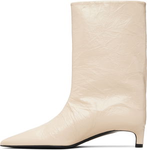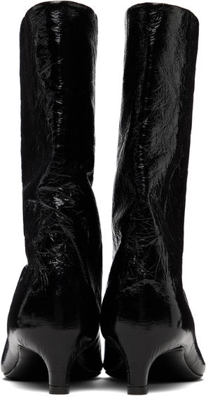 Knee-high buffed calfskin boots in burgundy.· Pull-loop at heel collar· Buffed leather lining· Stacked leather heel with rubber injection· Leather sole.