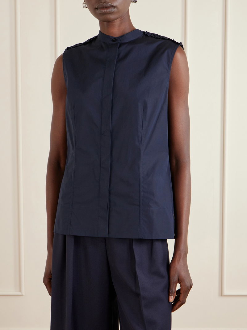 Jil Sander's top embodies the label's clean-lined design codes and understated sensibility. It's been made in Italy from cotton-poplin with a neat concealed placket and ruffled shoulders.