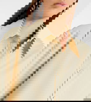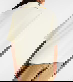 Jil Sander blends modern elements with '70s inspiration to create this polo shirt. Designed with an exaggerated pointed collar, it's made from cream jersey edged in tonal satin and has deep side splits and buttoned cuffs.