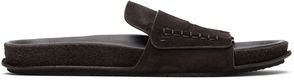 Buffed leather sandals in brown.· Open toe· Criss-crossing straps at vamp· Velcro slingback strap· Logo patch at molded footbed· Treaded rubber sole.