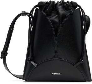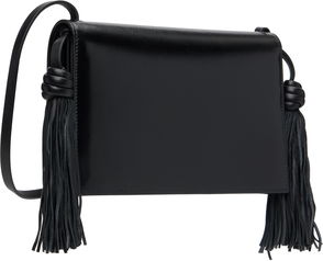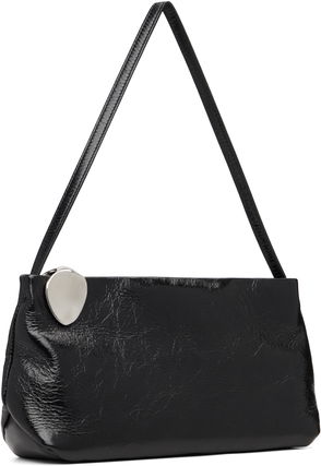 Croc-embossed calfskin shoulder bag in black. · Hand-knotted fixed shoulder strap· Logo stamp at face· Magnetic press-stud closure· Card slot at interior· Nappa sheepskin lining.