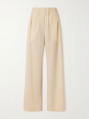 Jil Sander’s minimalist aesthetic is influenced by nautical codes highlighted through the buttoned panel on these navy trousers. They’re crafted in Italy from durable wool to a high-rise waist with wide legs that are pleated and descend to cropped cuffs. Style them with monochromatic separates for a sophisticated note.