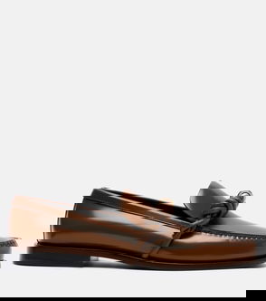 Hand-stitched crinkled patent goatskin loafers in yellow.