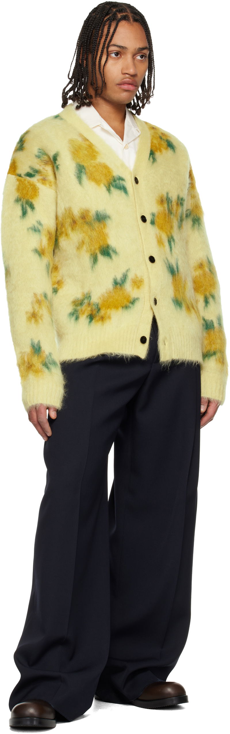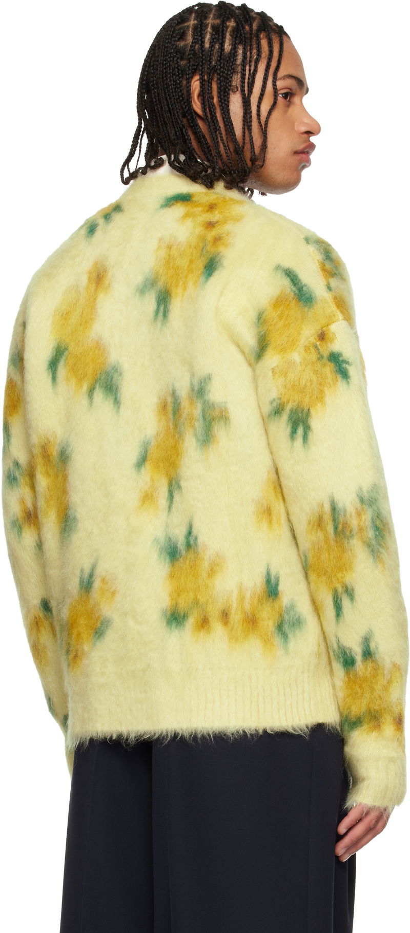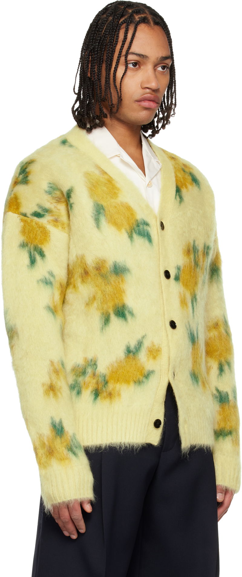 Yellow Wool Blend V-Neck Cardigan